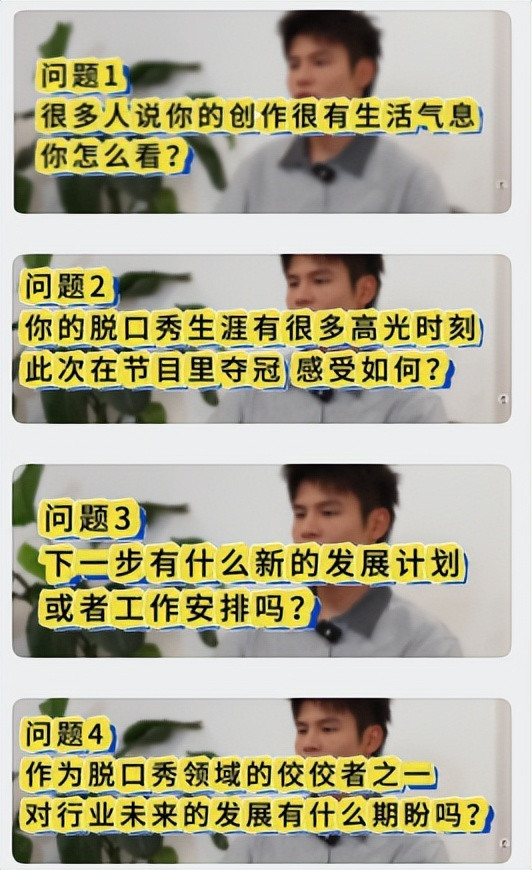 大致内容包括他怎么看待自己的“真实风格”、夺冠后的感受、下一步规划,与对脱口秀未来发展的看法。