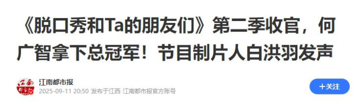 继8月30日在《脱口秀和Ta的朋友们2》的总决赛中夺冠后,何广智又迎来自己的新高光时刻——被新华社专访。