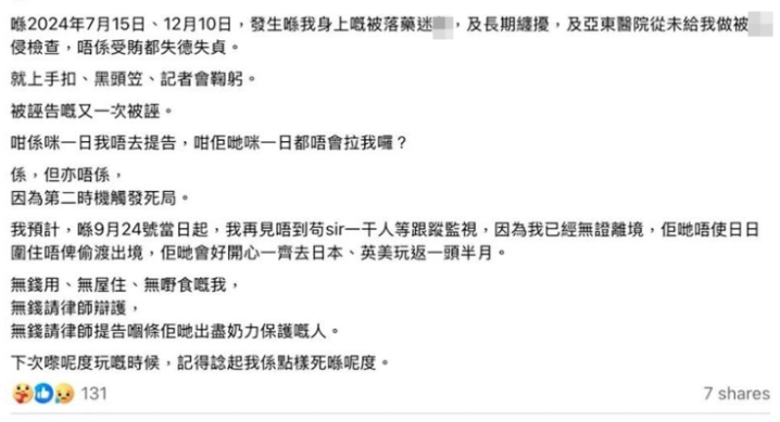 知名港星自曝遭友人侵犯跟踪, 称没钱没地方住已山穷水尽, 害怕被陷害入狱