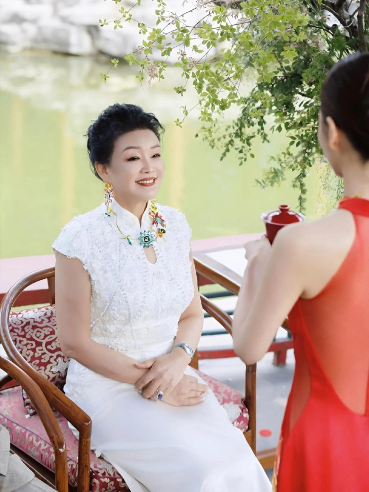婚礼现场,张兰穿白旗袍亲自给马筱梅戴金镯子,还在直播里喊:“我这儿媳妇就是我们家贵人!”