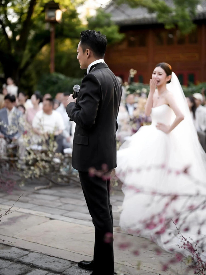 今年5月两人在北京四合院办婚礼,马筱梅身穿洁白的婚纱,汪小菲则西装革履仪式感十足,两人十指紧扣,脸上幸福的笑容藏都藏不住。