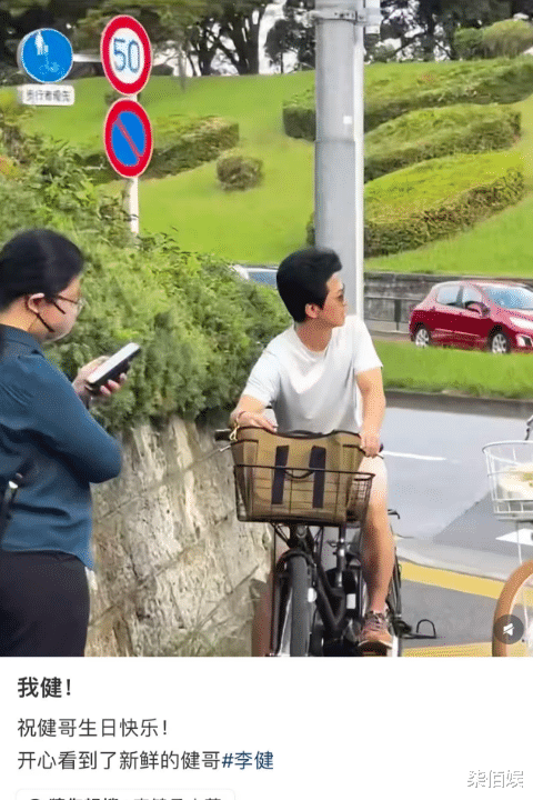 照片中,李健穿着白色T恤戴着墨镜,一身休闲打扮并不高调。李健骑着车回着头,像是在和别人聊天。